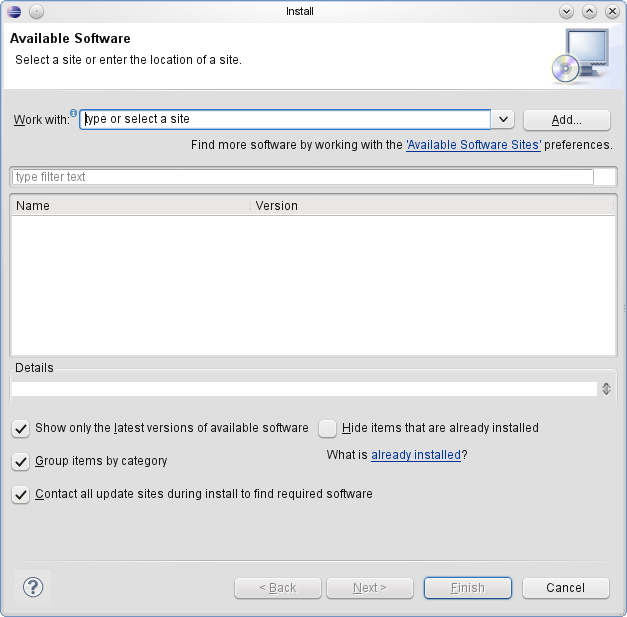 Existem duas maneiras de instalar o ADT (Android Developers Tools), vou ensinar a qual acredito ser a mais fácil, após abrir o Eclipse, clique em Help > Install New Software, surgirá uma caixa de diálogo.